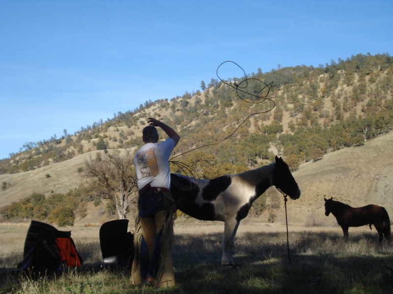 Getting some sacking out done while the horses rest for lunch