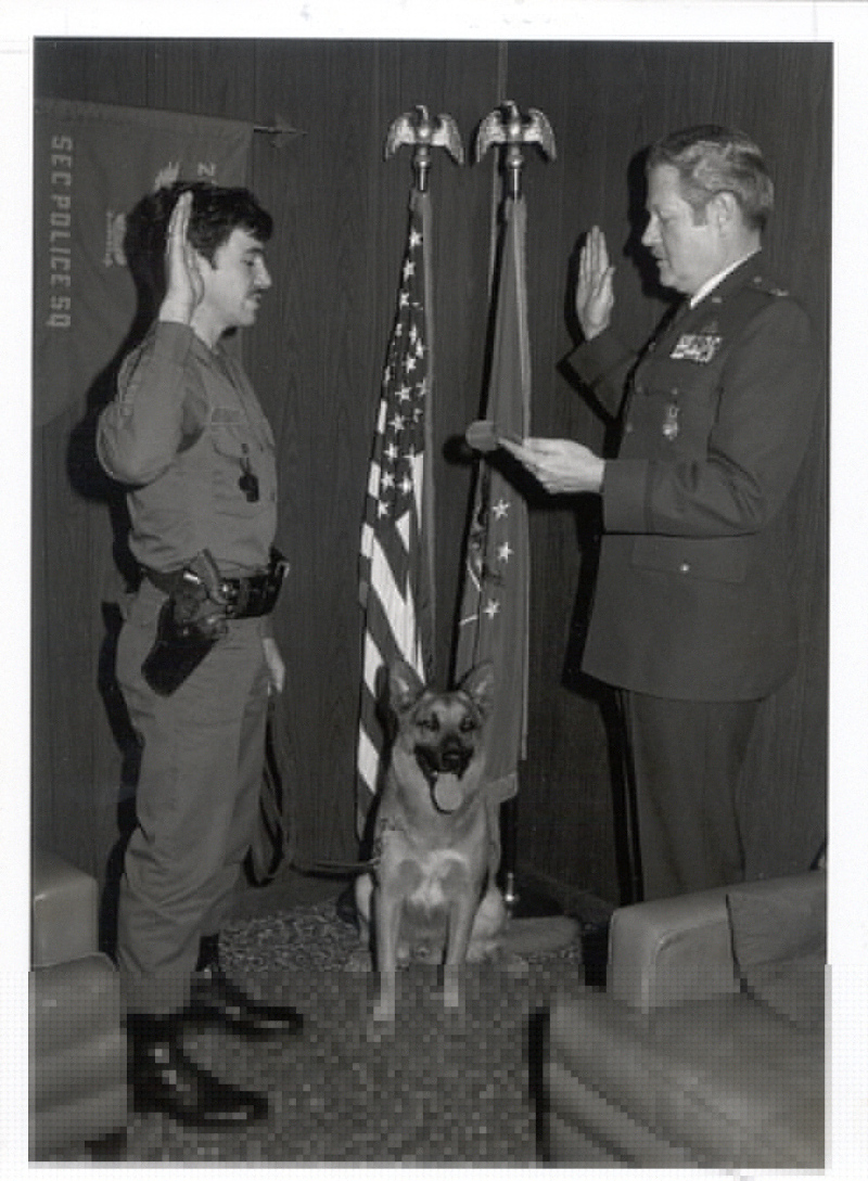 Rick in his younger days reenlisting in the USAF with his friend and best commander, Colonel Ralph E. Fisher and his best police dog "Herc".